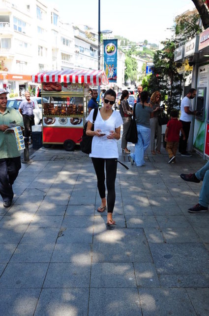Cemiyet hayatının ünlü isimlerinden Edvina Sponza, Boğaz'ın elit semti Bebek'te yürüyüş yaparken görüntülendi.