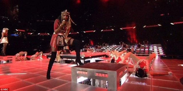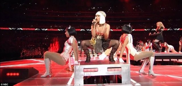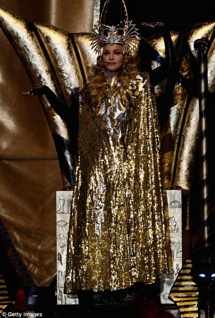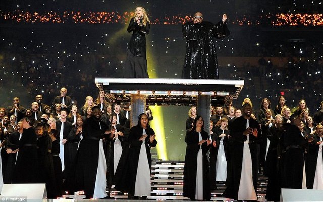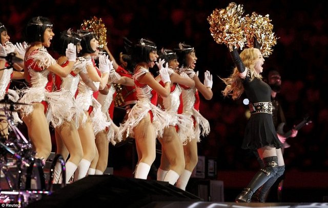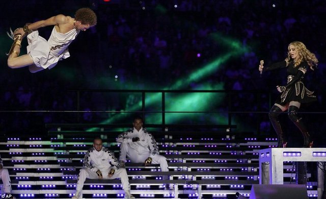 Ünlü pop müzik sanatçısı Madonna, New York Giants ve New England Patriots'un karşı karşıya geldiği NFL şampiyonluk maçı Super Bowl finalinin devre arasında büyüleyici bir gösteriye imza attı.