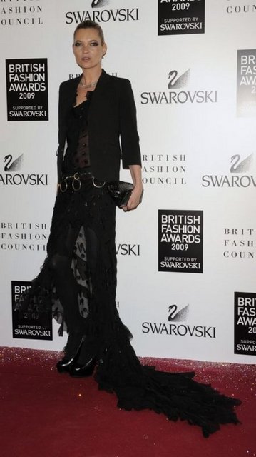 Kate Moss, Londra Moda Haftası'nda siyah mini elbisesiyle bacak şov yaptı!
