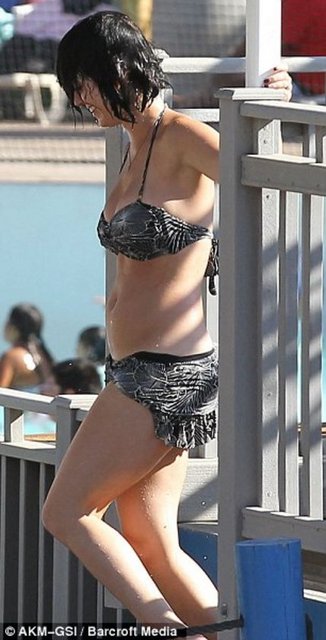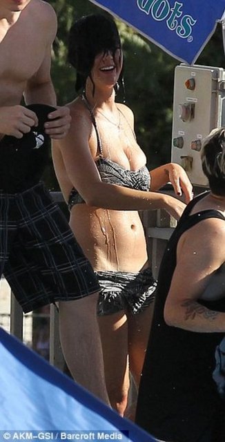 Los Angeles'taki eğlence havuzunda görüntülenen Amerikalı şarkıcı Katty Perry, bikinisinin azizliğine uğradı.