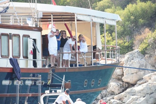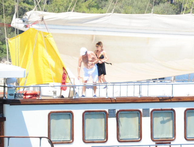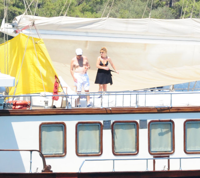 Yalçın-Neslihan Sabancı çifti Bodrum'da demirli teknelerinde objektiflere yansıdılar.