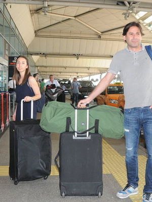 Aykut-Banu Tarakçıoğlu çifti ve Marina Elhadef, önceki gün Atatürk Havalimanı'nda objektiflere yansıdılar.