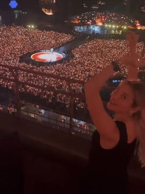 Cemiyet hayatının genç ve tanınmış simalarından Pınar Sabancı, dünyaca ünlü müzik grubunun konserine giderek Milano'da eğlendi.